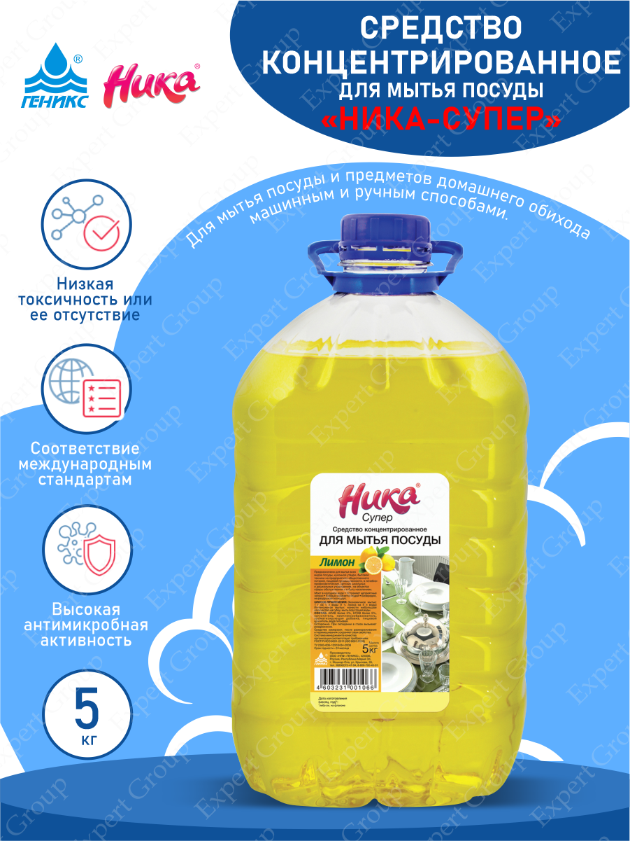 Средство для мытья посуды 5кг НИКА "Супер", лимон, концентрат, ПЭТ, ш/к 01066