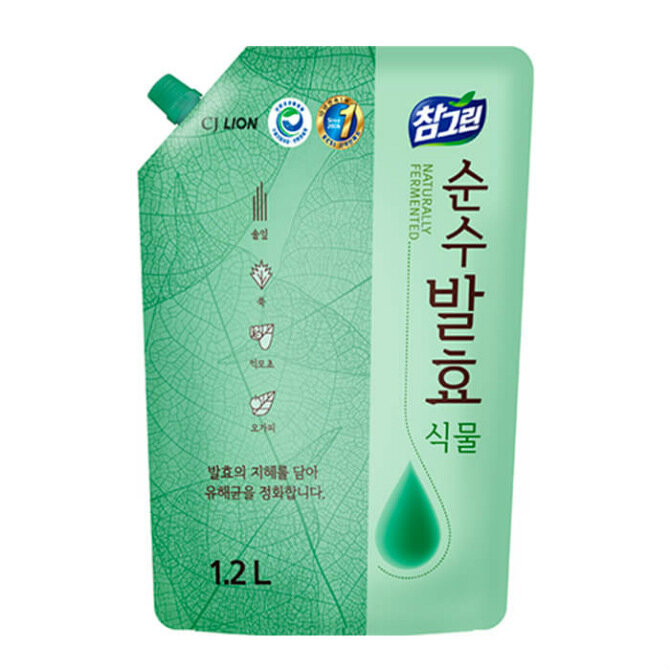 CJ Lion Ср-во д/мытья посуды Chamgreen Pure Fermentation "Растительные ферменты" мягк. упак., 1200мл