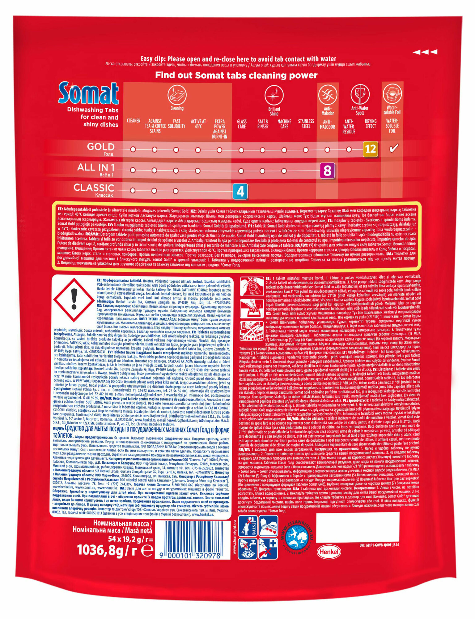 Таблетки для посудомоечных машин Somat Gold 54шт - Henkel