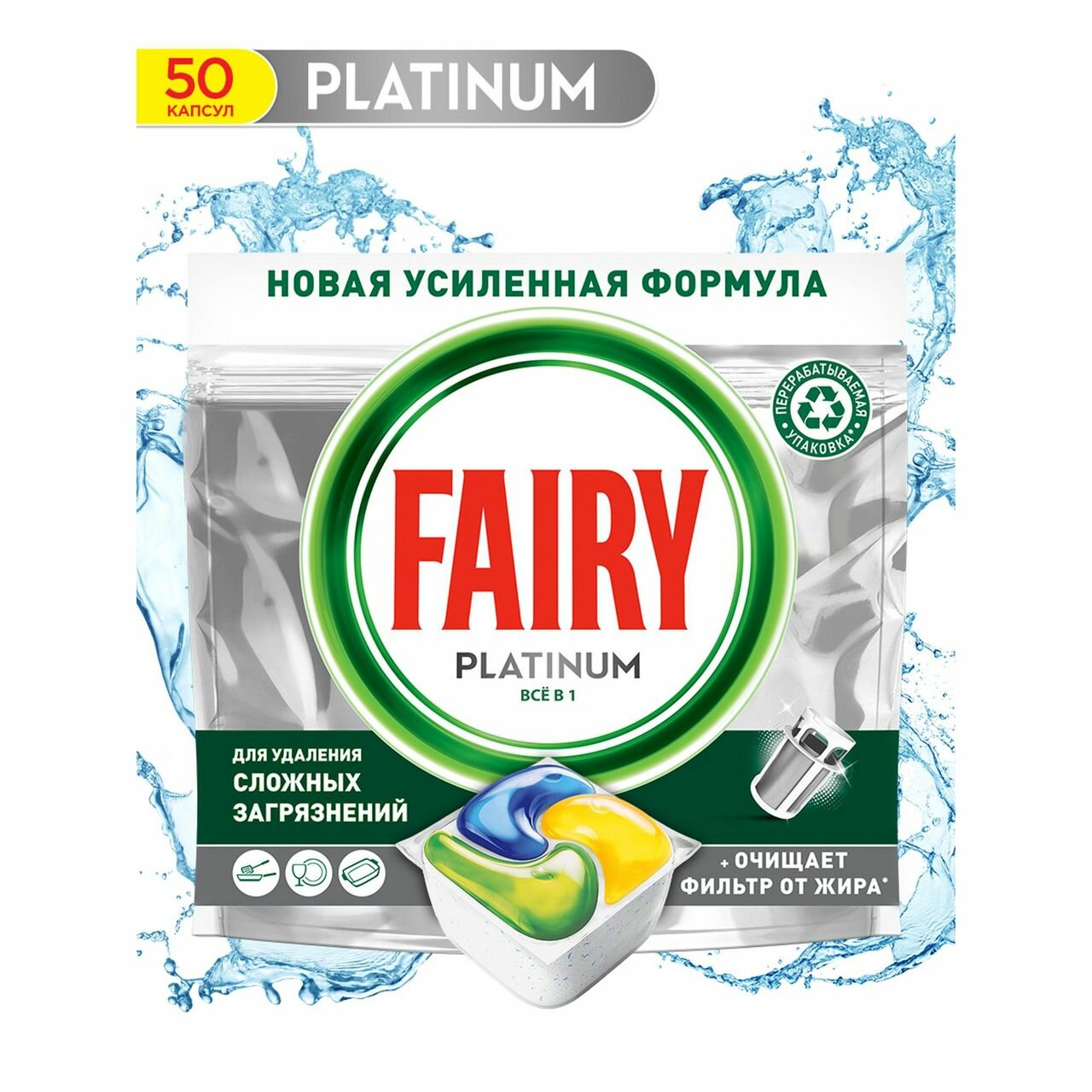 Купить Капсулы для посудомоечных машин Fairy Platinum All in one, 50шт