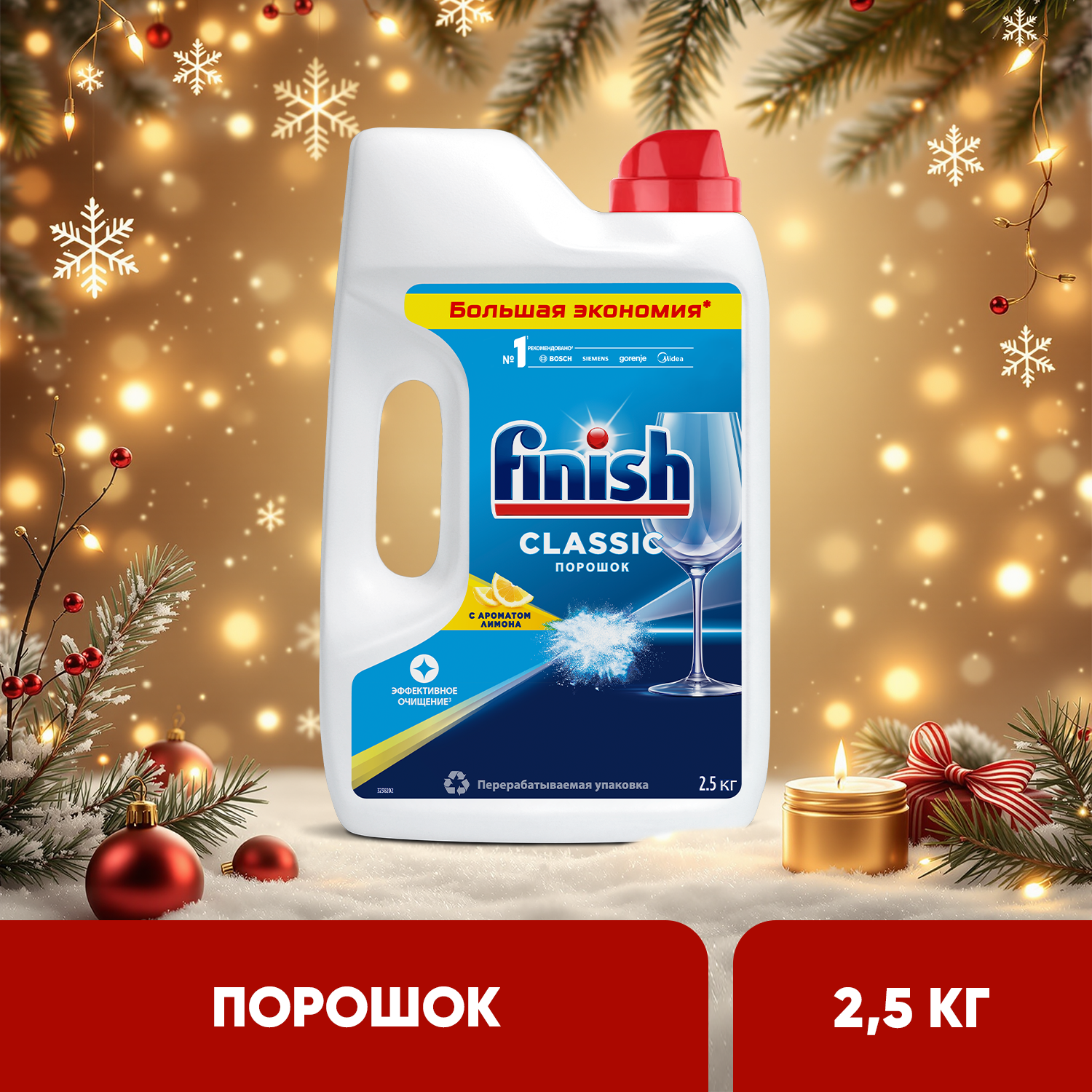 Порошок для посудомоечной машины Finish Classic порошок (лимон), 2.5 кг