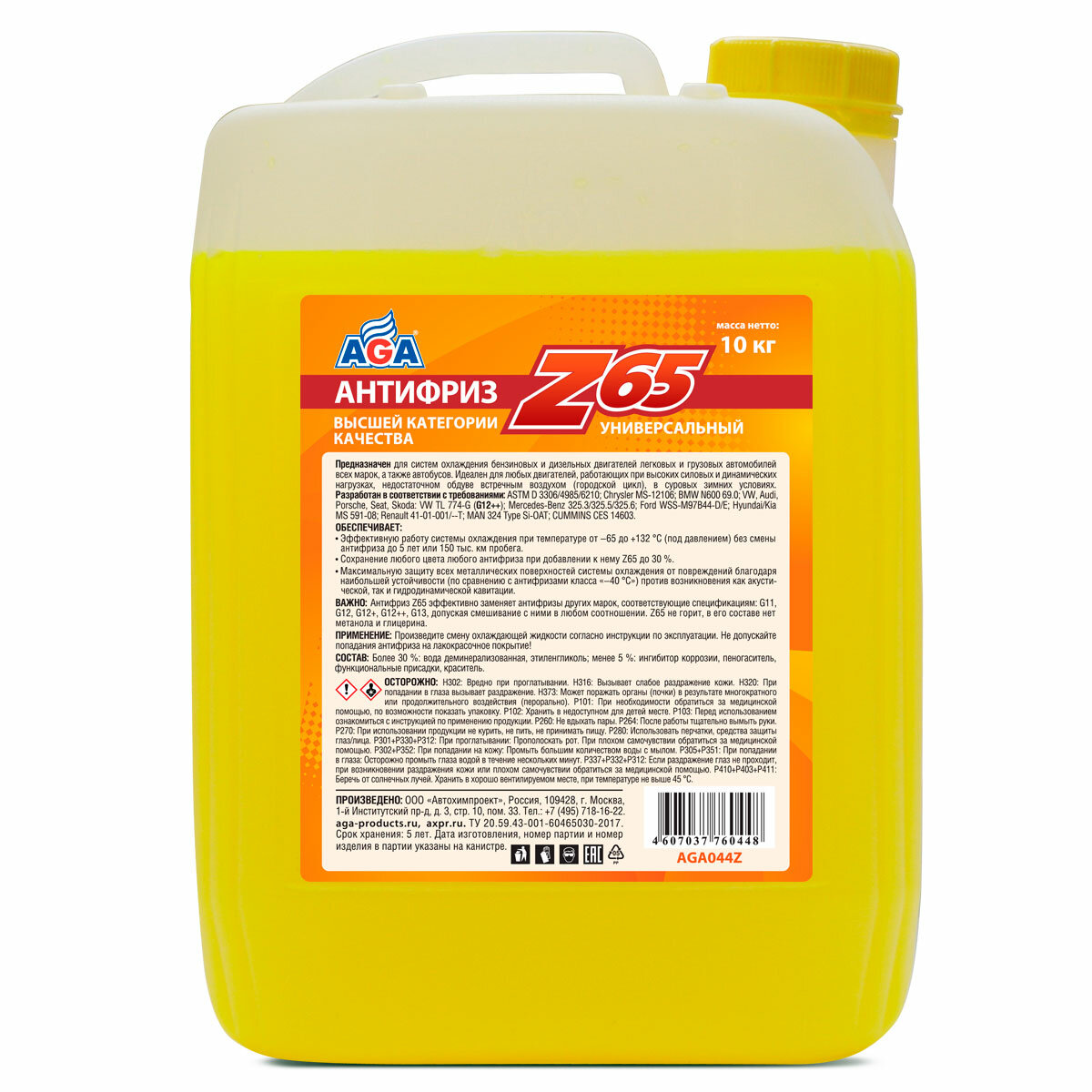 AGA AGA044Z Жидкость охлаждающая "Антифриз" AGA Z-65 желтый (-65) 10 л G12