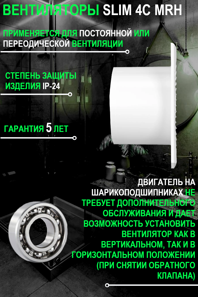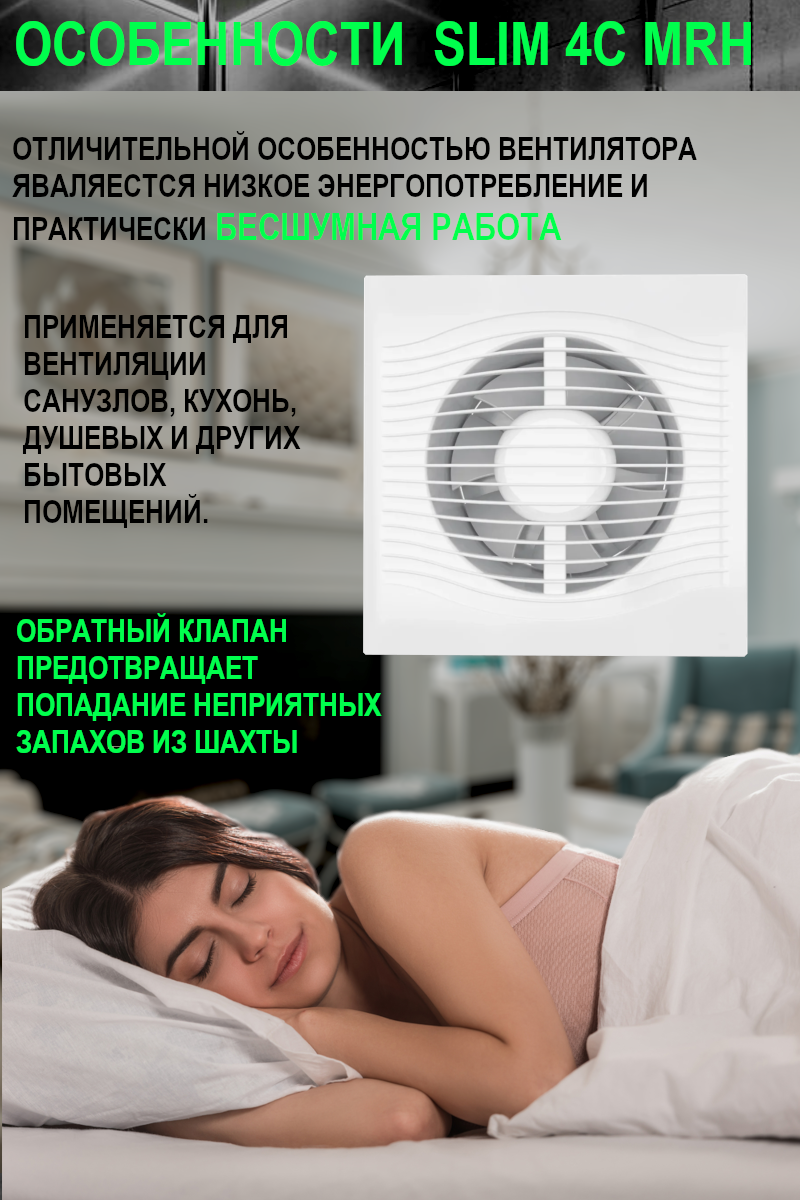 Вентилятор SLIM 4C MRH обр.клапан D 10