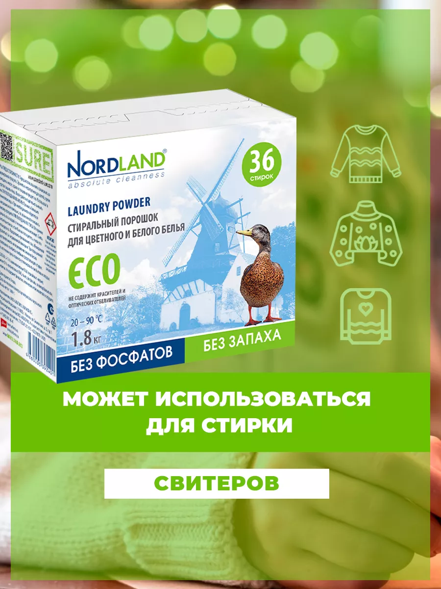 Nordland Стиральный порошок ECO без фосфатов и без запаха 1,8 кг на 36 стирки