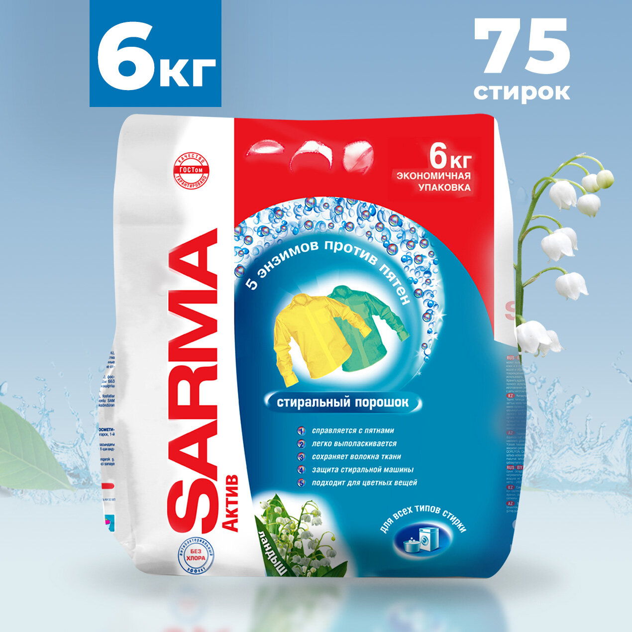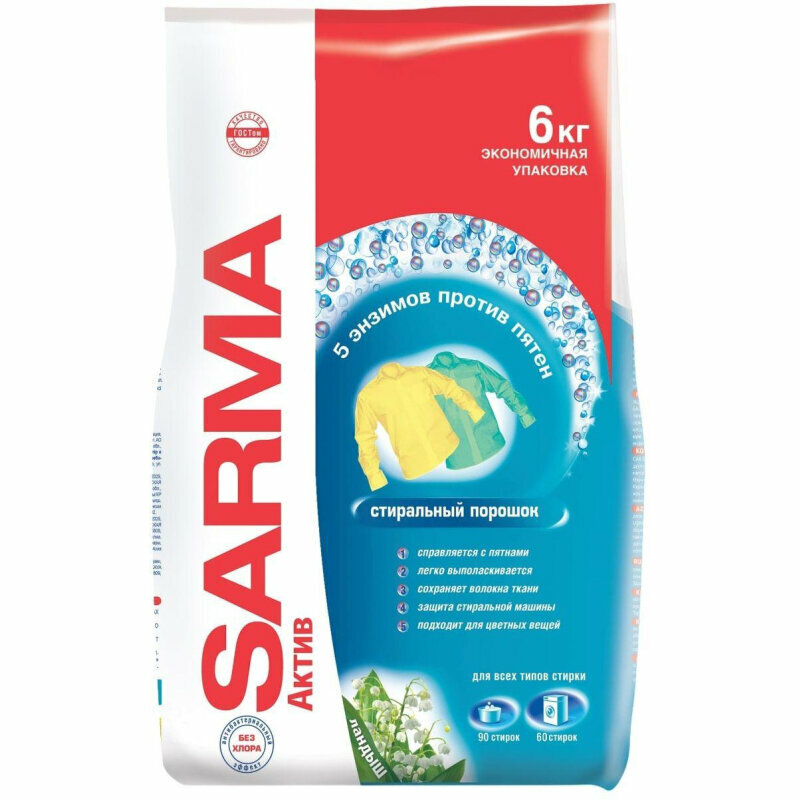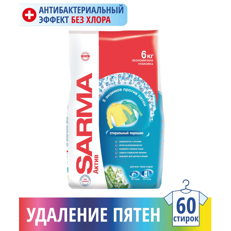 Порошок стиральный SARMA Active Ландыш, 6 кг Sarma 3745583 .
