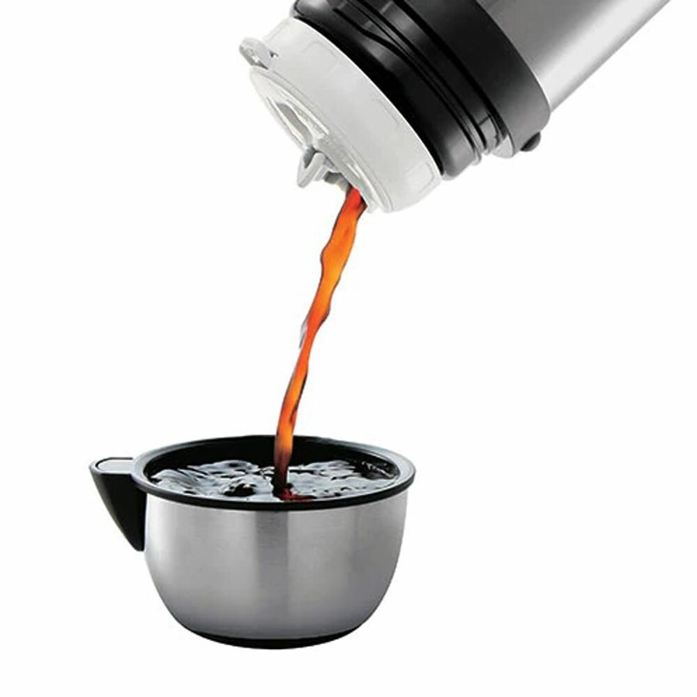 | Плюсы: | Очень долго держит температуру напитка. Очень удобно наливать из термоса, все продумано. В наличии две чашки. |