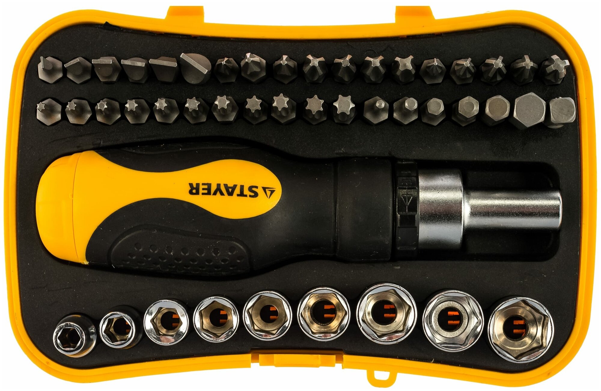 STAYER 46 шт., отвертка реверсивная в наборе с битами и торцевыми головками Hercules 25084-H46