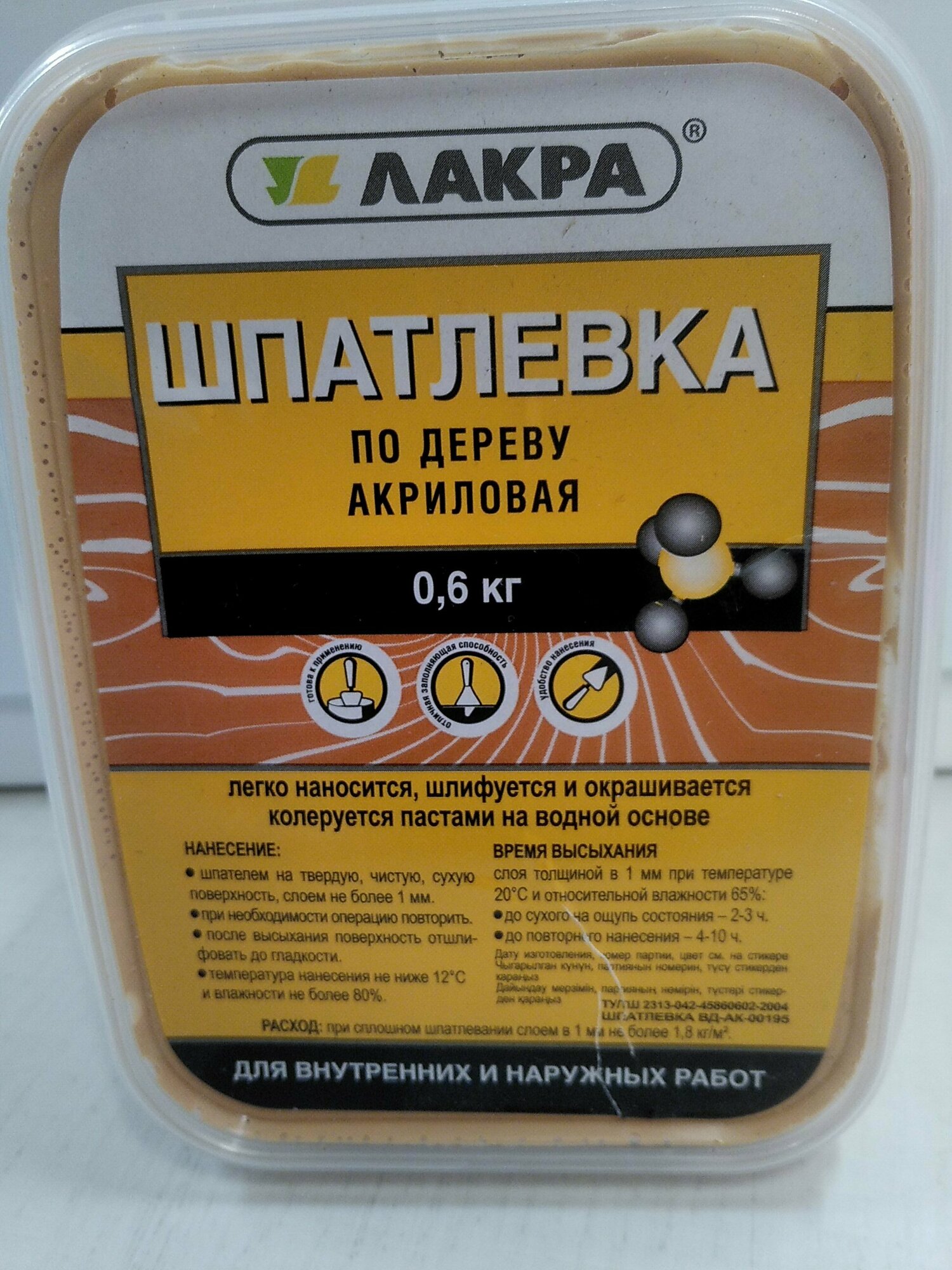Шпатлевка по дереву Лакра акриловая, Береза, готова к применению, 1,5 кг