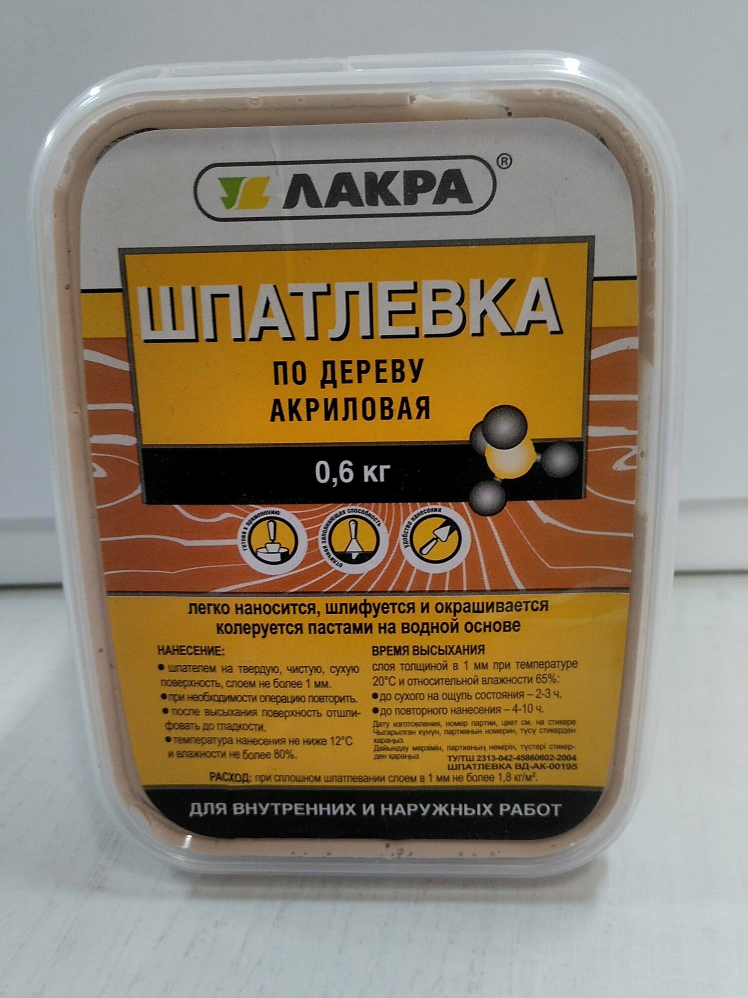 Шпатлевка по дереву Лакра акриловая, Белая, готовая к применению, 0,6 кг