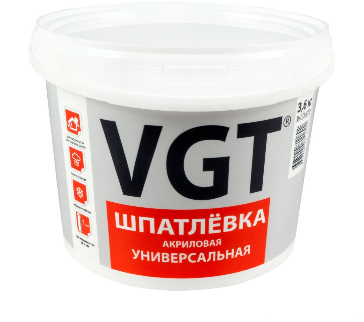 VGT шпатлевка универсальная акриловая для наружных и внутренних работ (3,6кг) интересное: