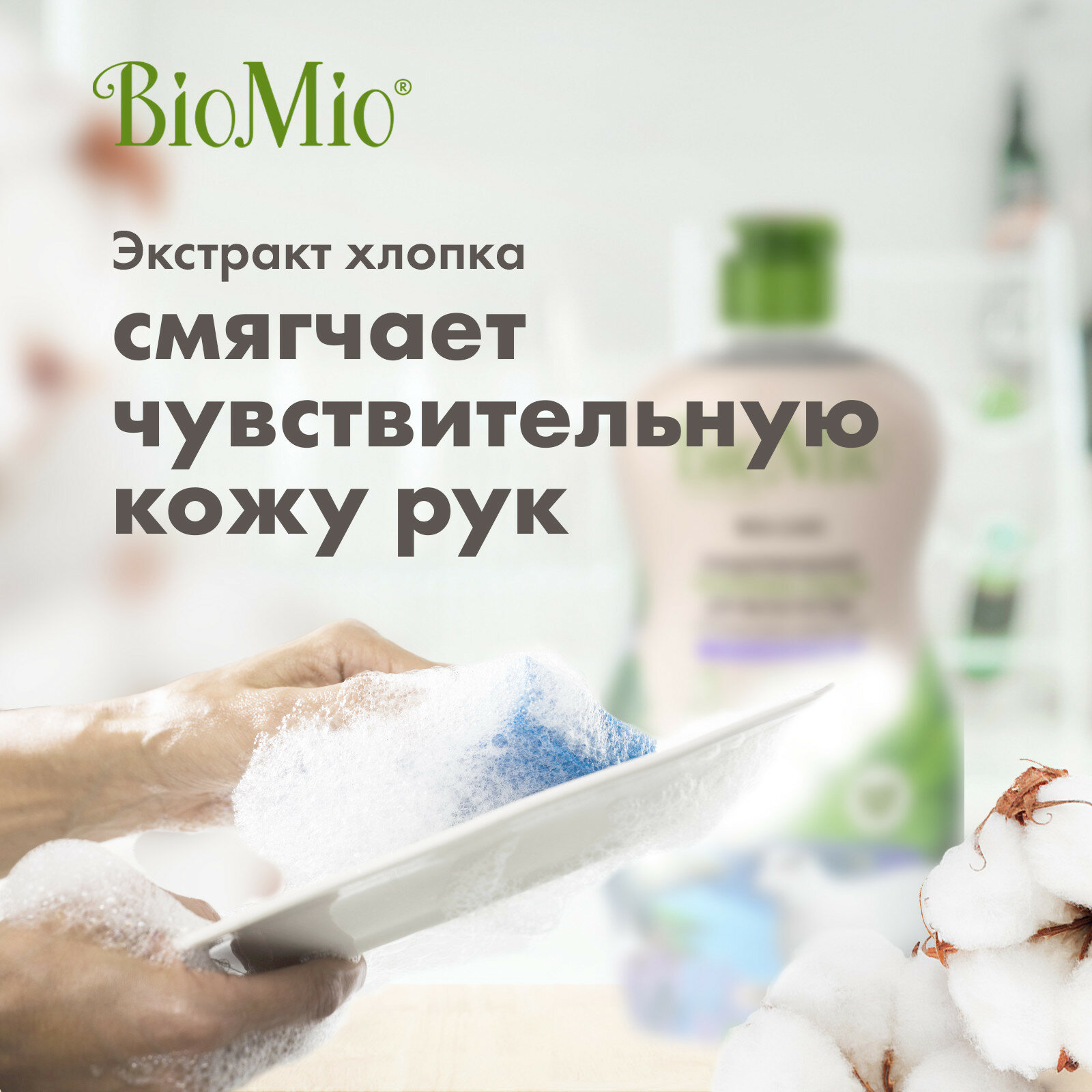 BioMio. BIO-CARE Экологичное средство для мытья посуды (в том числе детской), овощей и фруктов БиоМио. С эфирным маслом лаванды, экстрактом хлопка и ионами серебра. Концентрат. 450 мл