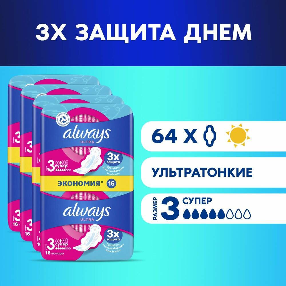 Женские гигиенические прокладки с крылышками Always Ultra Супер, размер 3, 16 шт, 1 упаковка
