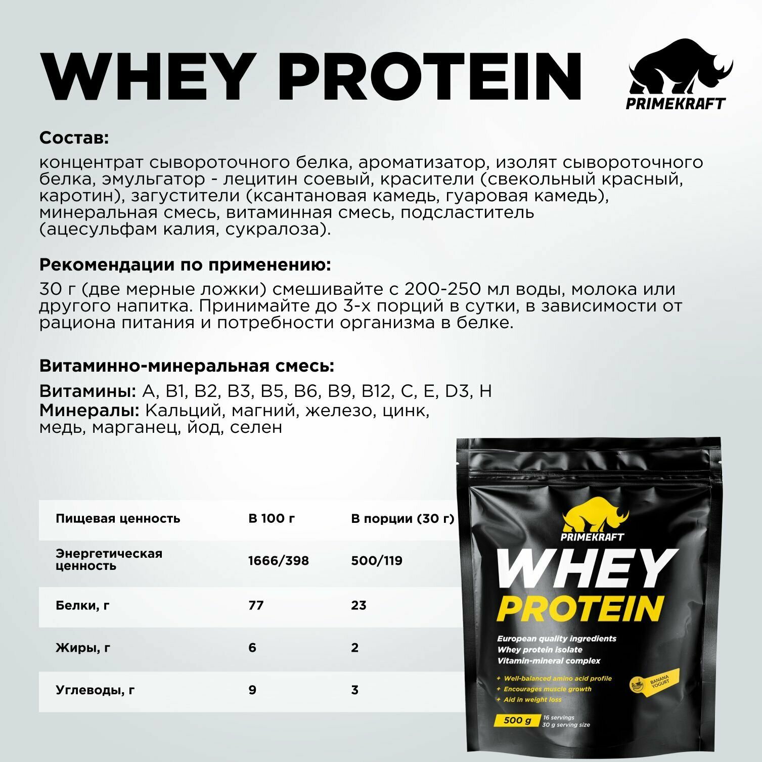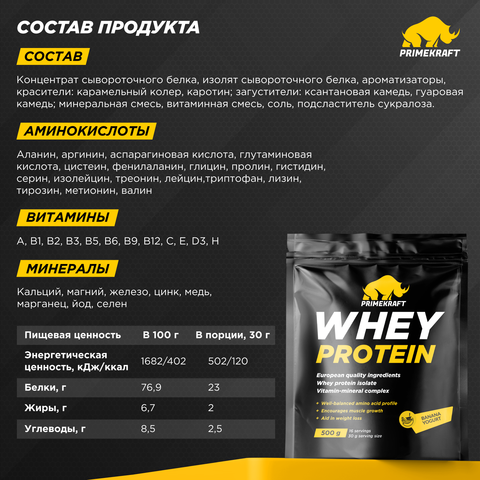 Купить Протеин сывороточный PRIMEKRAFT Whey Protein, Банановый йогурт 500 г / 16 порций