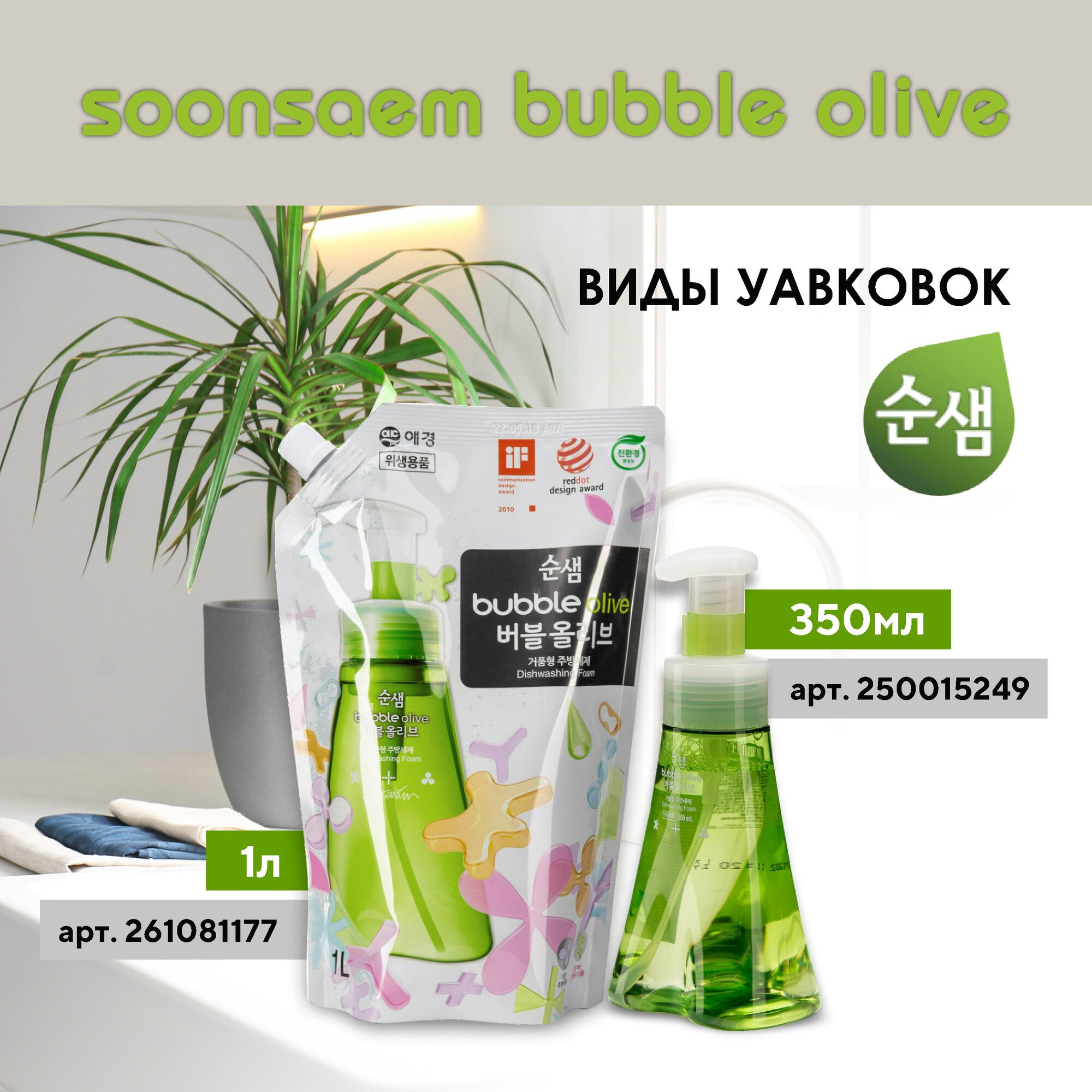 Aekyung Soonsaem Bubble Olive Пенка для мытья посуды Оливки 350 мл с помпой-дозатором