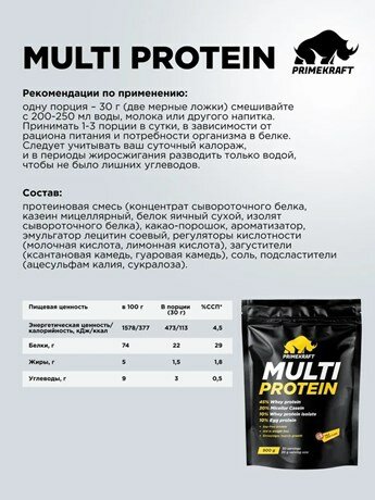 Многокомпонентный протеин PRIMEKRAFT "Multi Protein", Молочный шоколад, 900 г