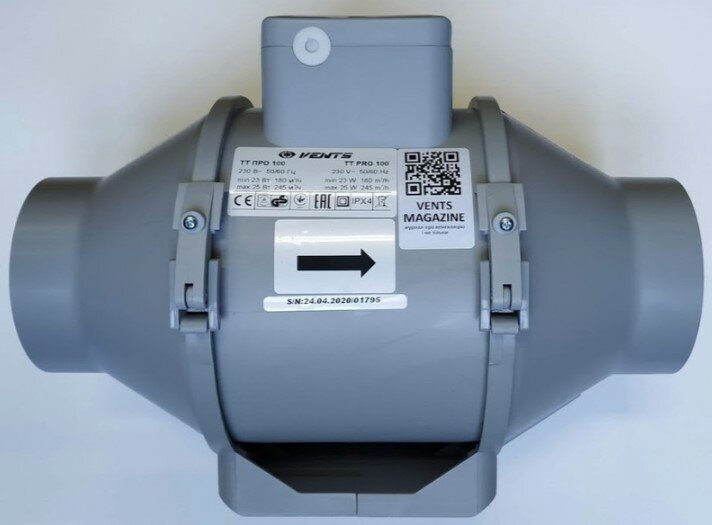 Канальный вентилятор VENTS ТТ ПРО 100 серый интересное: