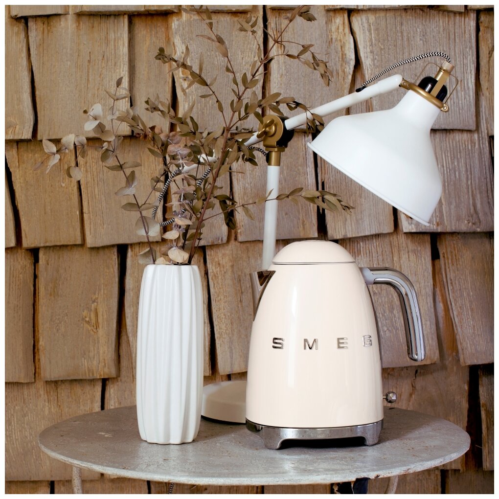 Электрический чайник Smeg Стиль 50-х г., чайник электрический, 1.7 л, 2400 Вт, корпус из нержавеющей стали, белый матовый