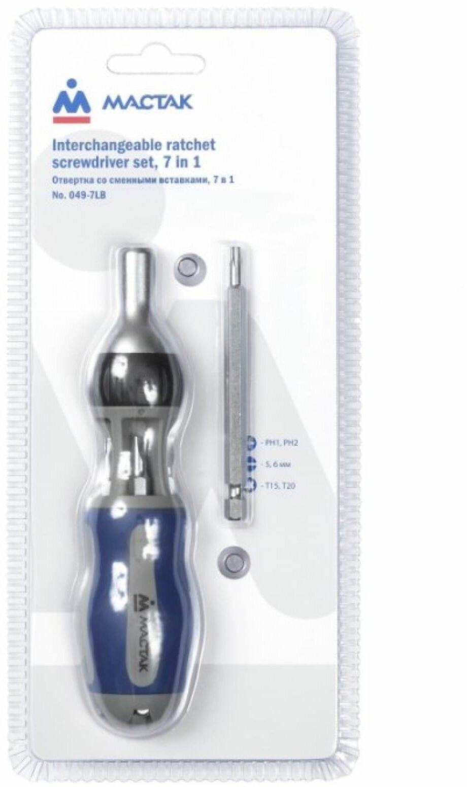 Мастак 049-7LB Отвертка со сменными вставками (битами), 7 в 1