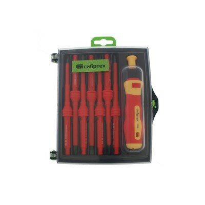 СИБРТЕХ Отвертка со сменными жалами, диэлектрическая до 1000 В, набор 9 предметов, CrV Сибртех (12938)