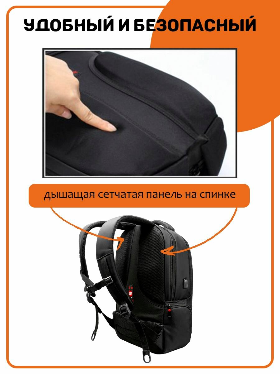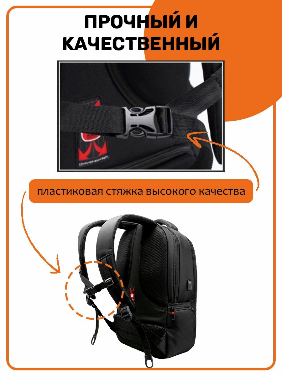 | Минусы: | На фото есть USB зарядка, но на самом деле на рюкзаке она отсутствует и нет кодового замка. |