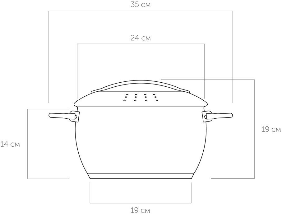 | Плюсы: | Удобные складывающиеся ручки, крышка с отверстиями для слива. |