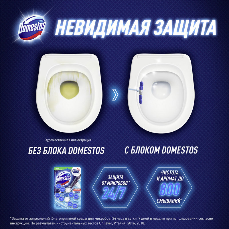 Средство для санузлов DOMESTOS 110г блок Power 5 Дуо Свежесть океана для очищения унитаза