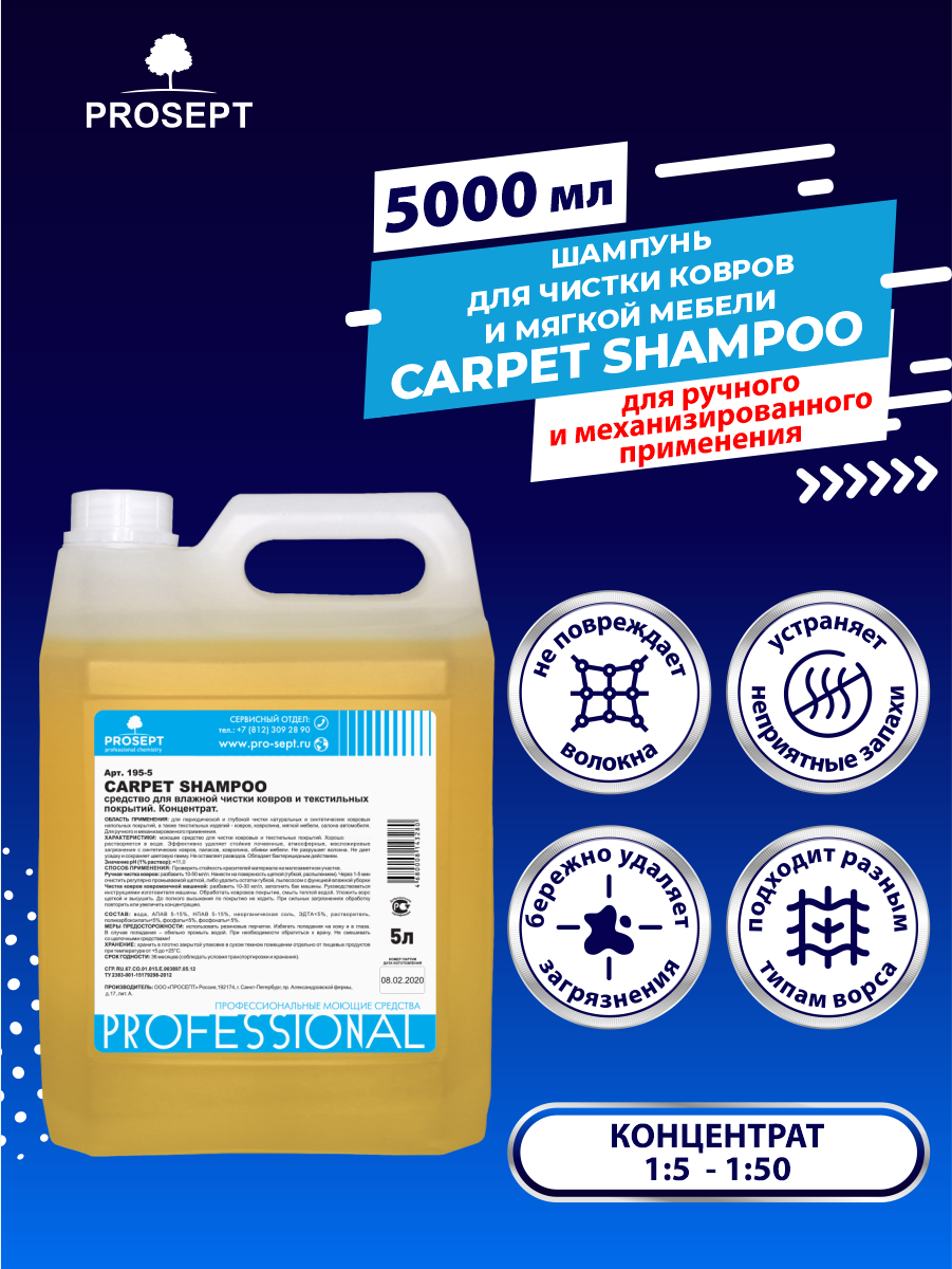 Купить Шампунь для чистки ковров и мягкой мебели PROSEPT Carpet Shampoo концентрат 5 литров