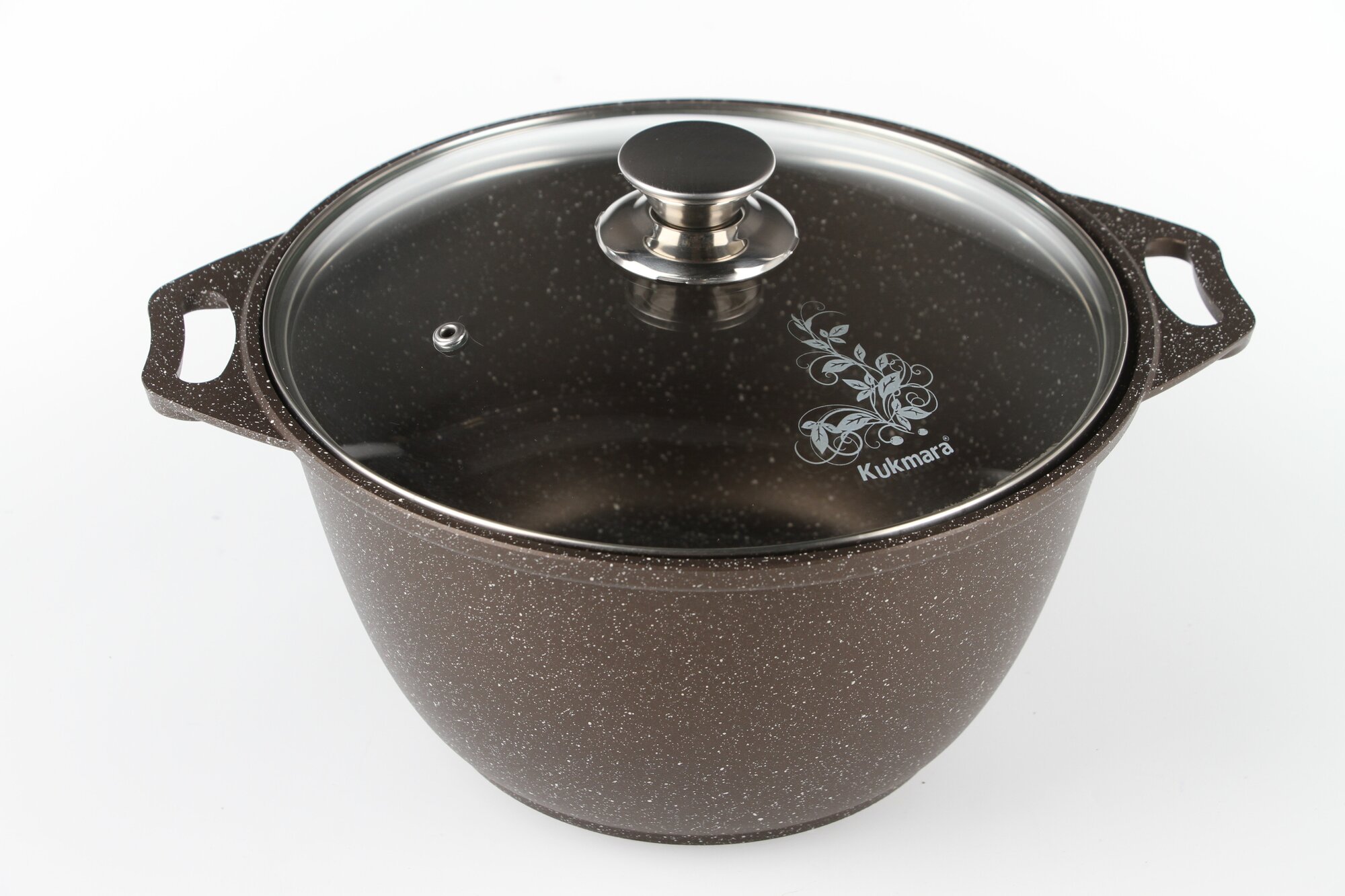 Кастрюля Kukmara 6 л, Мрамор кофейный, со стеклянной крышкой 26см, кмк62-1а