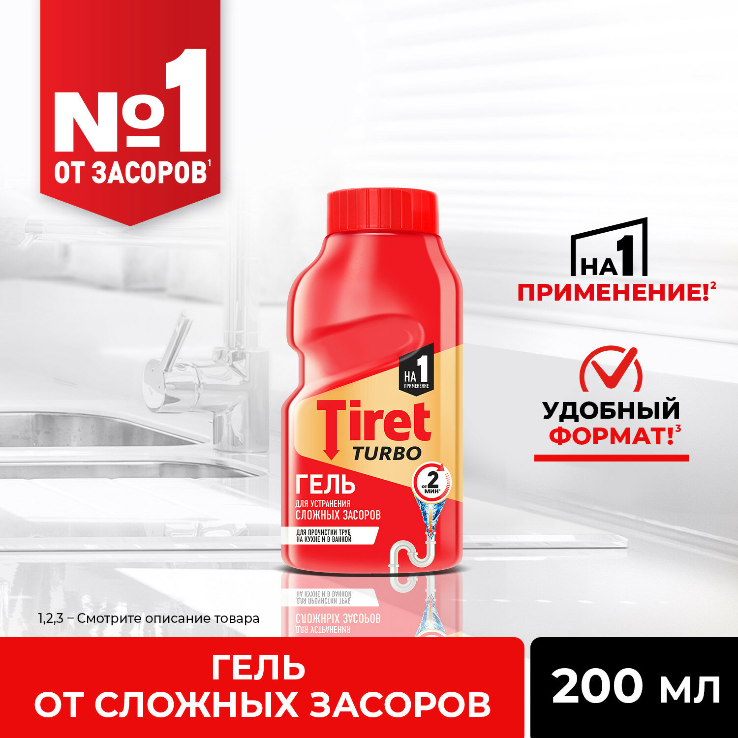 TIRET TURBO Гель для удаления засоров в канализационных трубах 200 мл. х 2 шт.