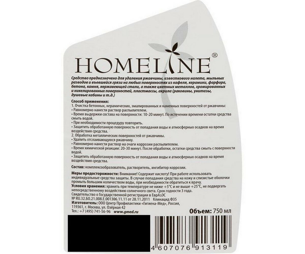 Средство для сантехники HOMELINE антиржавчина, 750 мл , 1 шт.