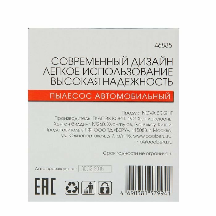 NOVA-BRIGHT 46885 Пылесос Nova Bright 60Вт, 12В 46885
