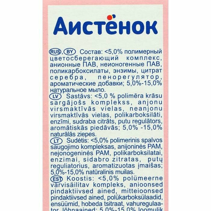 | Отзыв: | Раньше пользовалась простым АИСТЁНКОМ, но заметила, что он сделал моё постельное бельё блёклым. Посмотрела состав и увидела, что в нем был отбеливающий компонент. Стала искать порошок для цветного белья и с нейтральным запахом, и оказывается бывает АИСТЁНОК КОЛОР! Он сохраняет цвет моего белья, отлично отстирывает. Теперь покупаю его на яндекс маркете. |