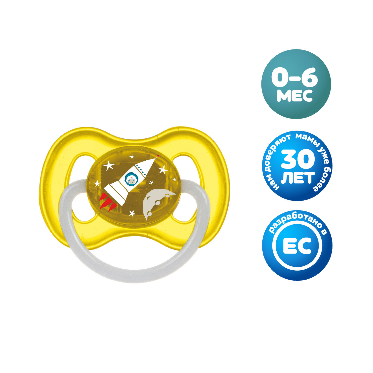 СохранитьПустышка латексная Canpol babies Space круглая, 0-6 мес, желтая интересное: