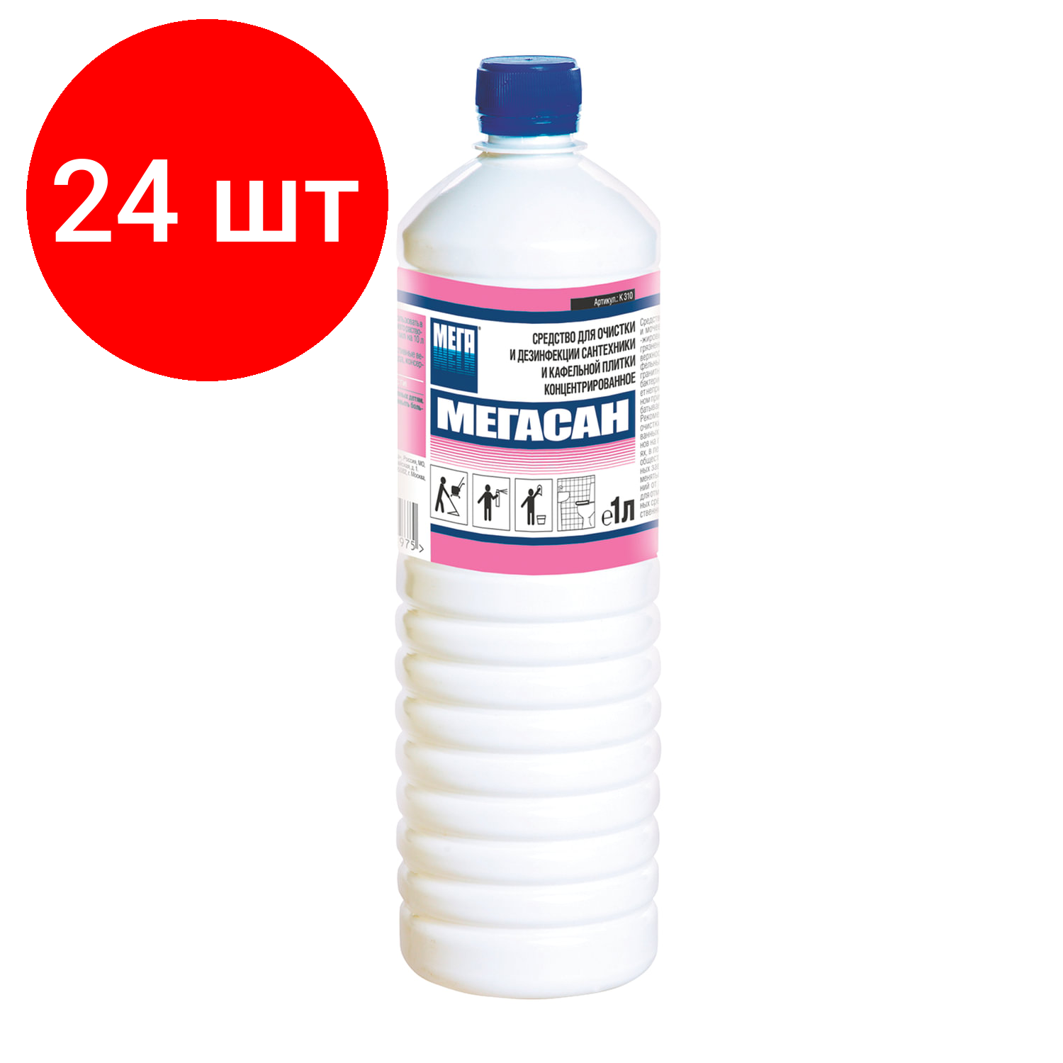 Средство для уборки санитарных помещений 1 л, комплект 24 шт., мегасан, дезинфицирующее, концентрат, К 310 у