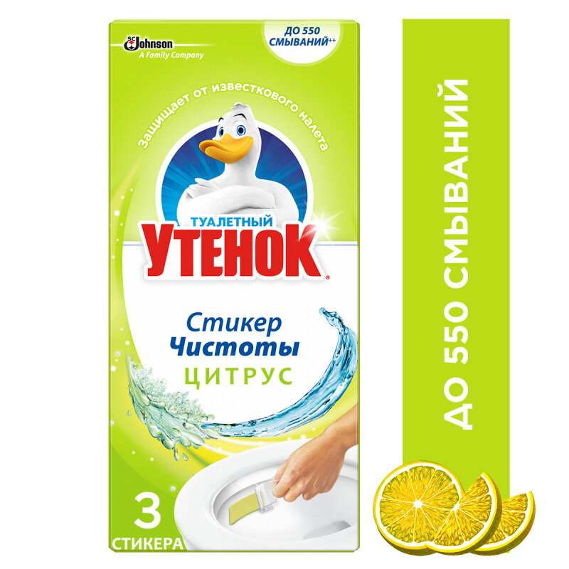 Туалетный Утенок Средство для очистки унитаза "Стикер чистоты Цитрус", 3шт х 10 г