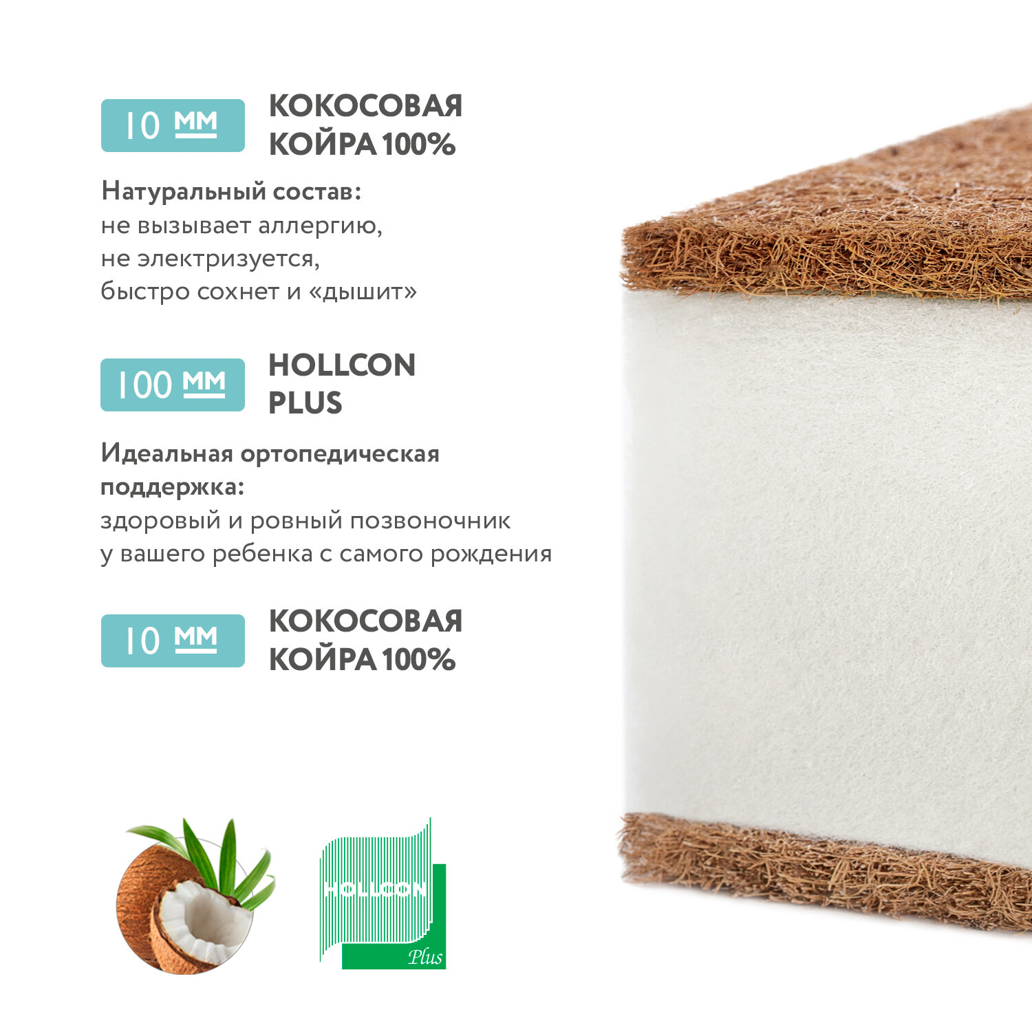 Матрас детский Plitex Eco Soft, 60x119 см интересное: