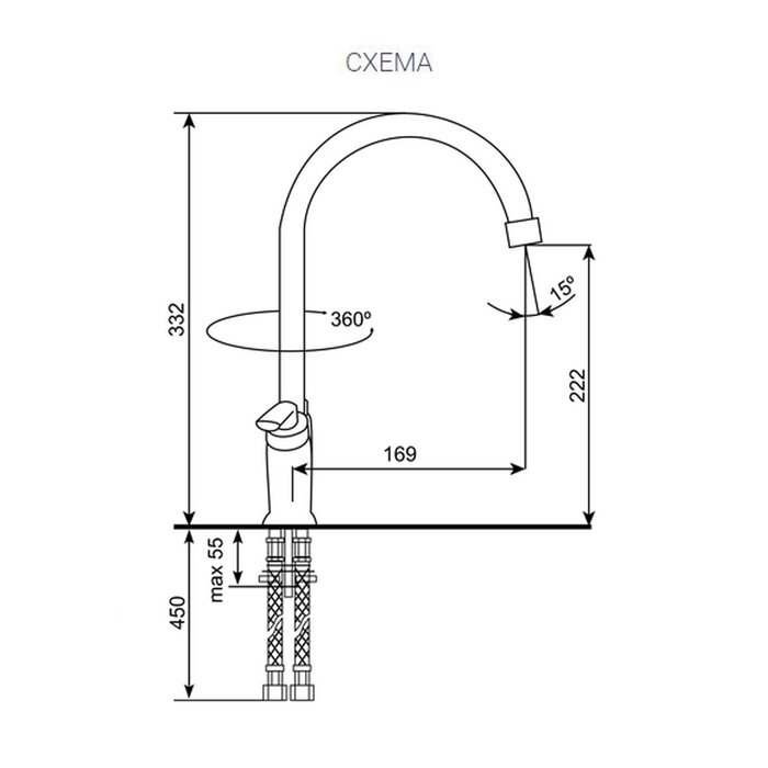 Смеситель Ulgran U-011 (308) черный, для кухонной мойки