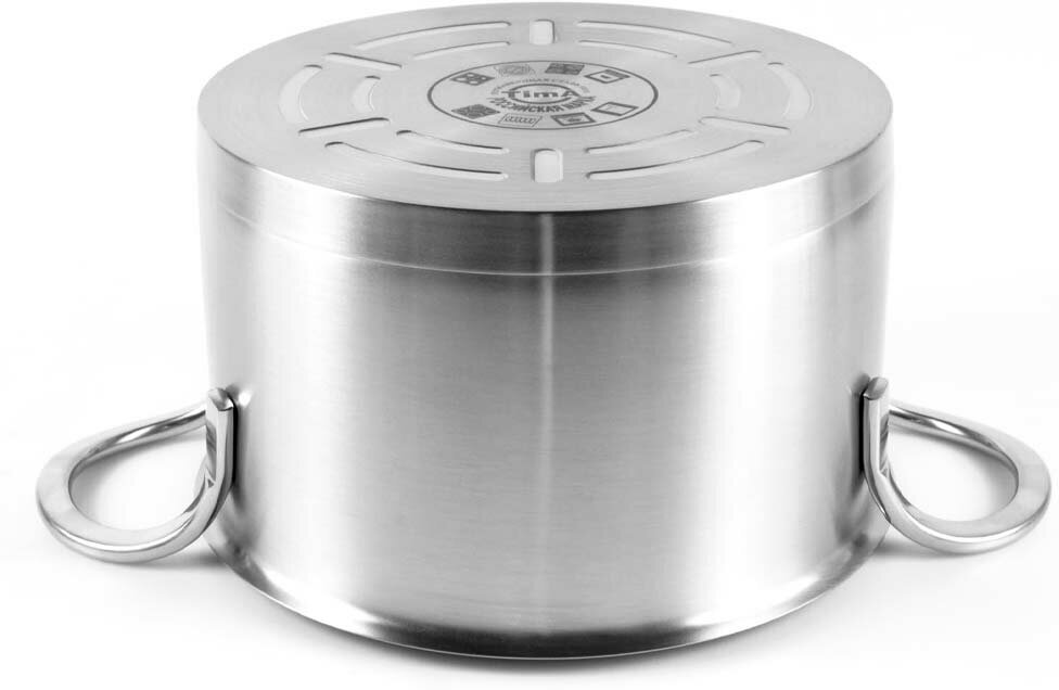 | Плюсы: | Простой лаконичный дизайн, без раздутых боков (не люблю я пузатые кастрюли), крепление ручек без заклепок и поэтому внутри кастрюли гладкие стенки |