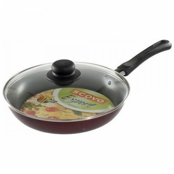 SCOVO EXPERT СЭ-029, Сковорода d: 260мм (стеклянная крышка, цвет: бордовый)