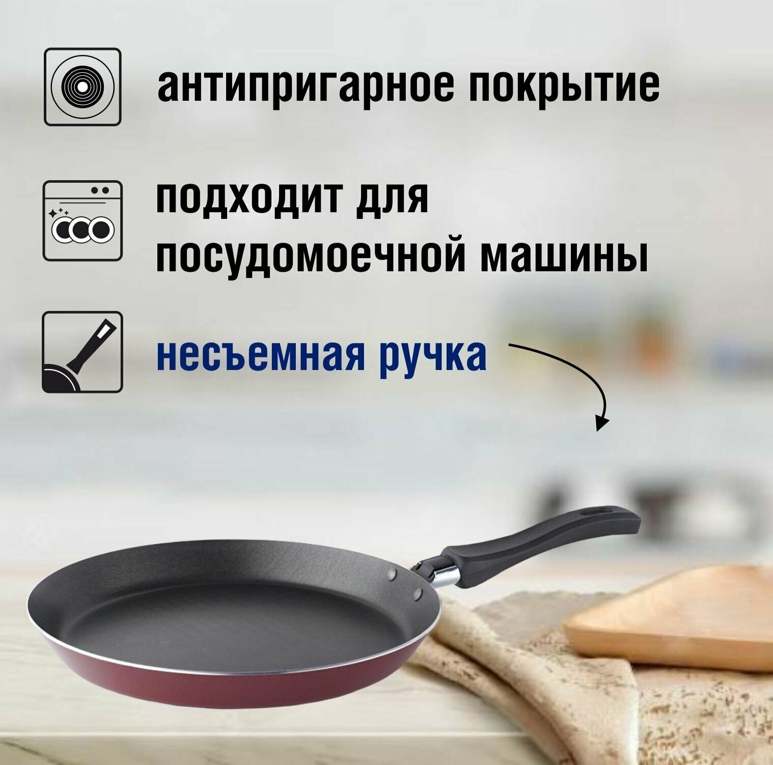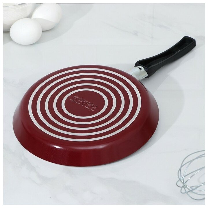SCOVO Сковорода блинная «Эксперт», d=25 см, пластиковая ручка, антипригарное покрытие, цвет бордовый