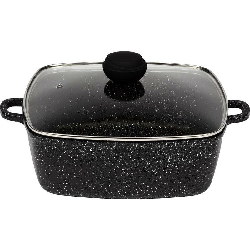 Кастрюля алюминиевая Беккер Schwarzmarbel со стеклянной крышкой, антипригарное мраморное покрытие, цвет черный 6.1л / посуда для всех видов плит