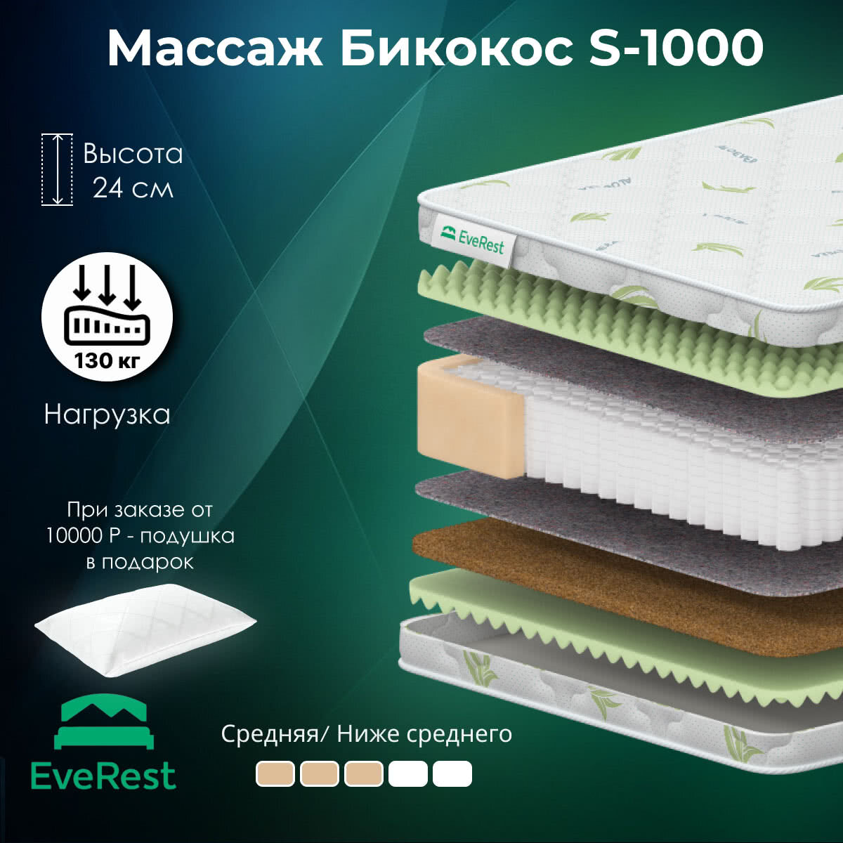 Матрас Everest Массаж Бикокос S-1000 (60 / 190)