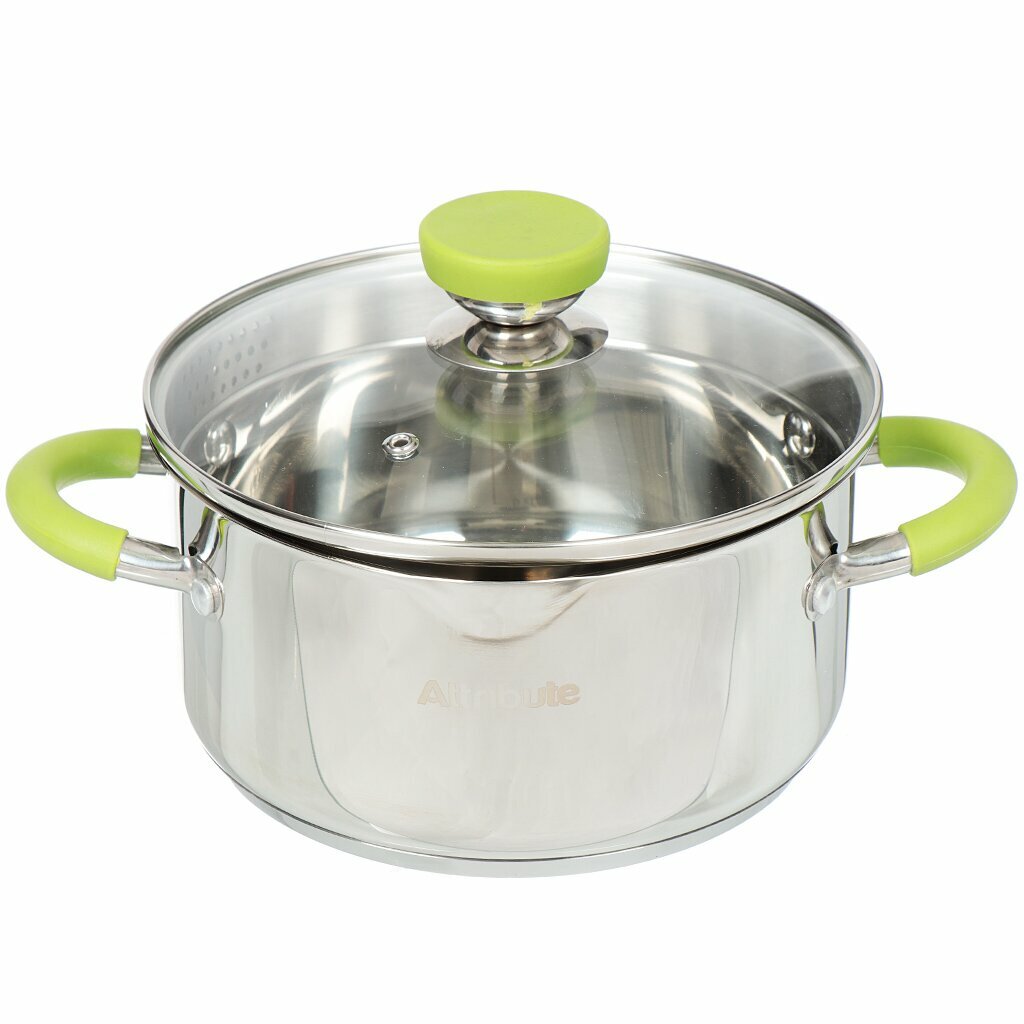 Кастрюля ATTRIBUTE Lime 2л 18см нерж.сталь стеклянная крышка индукция