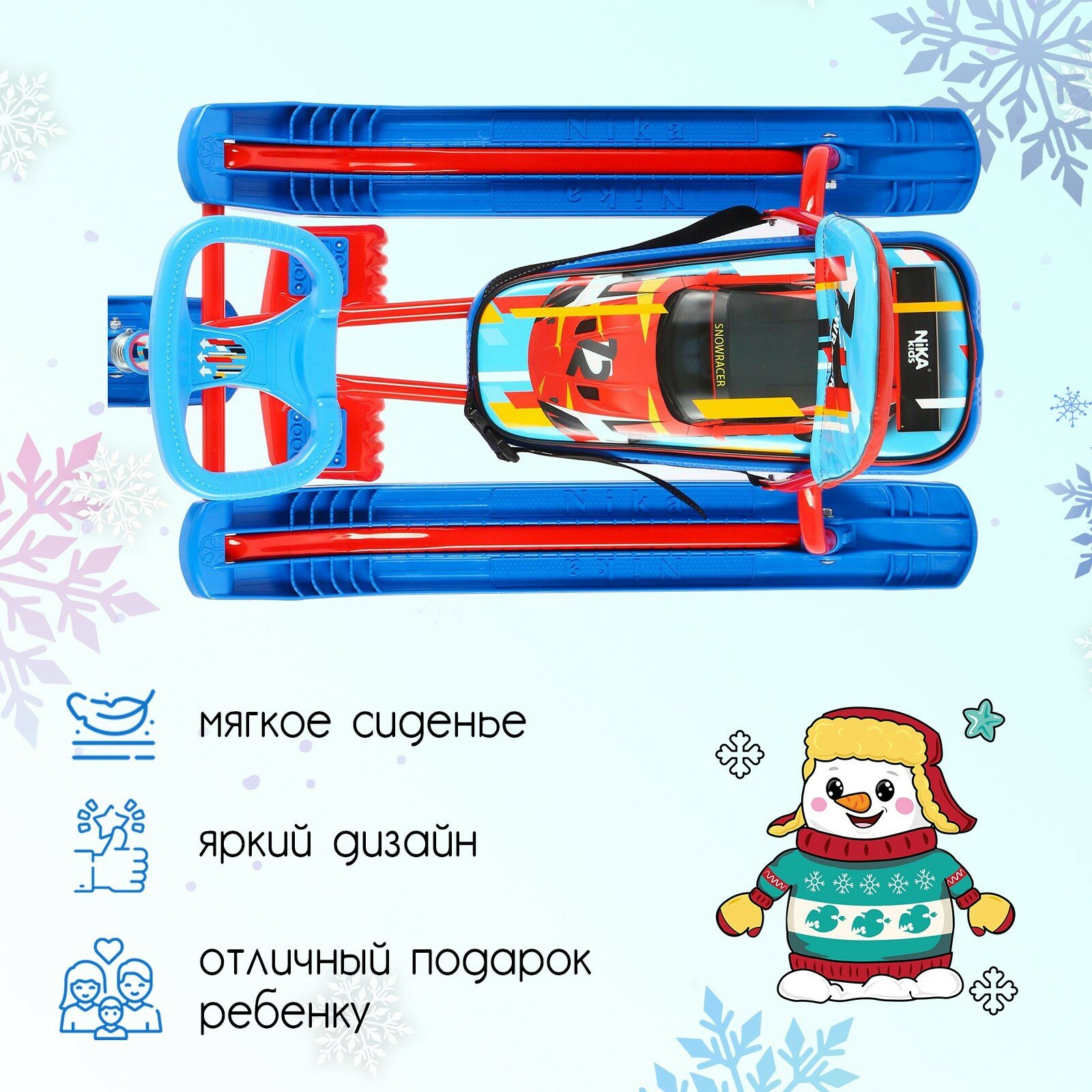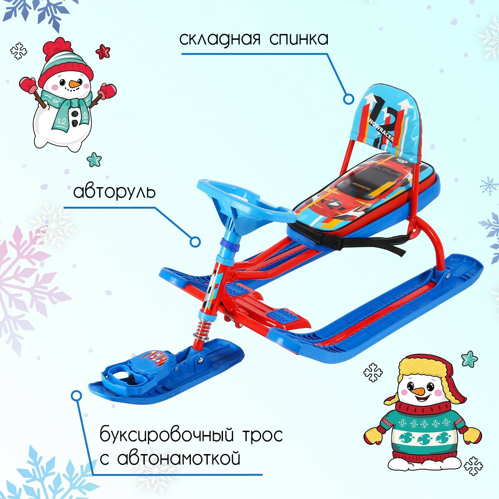 Nika Kids Снегокат «Тимка спорт 4-1 Sportcar», со спинкой и ремнём безопасности, цвет красный/синий