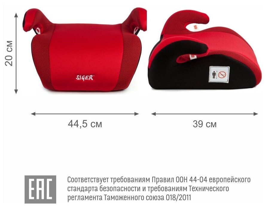 Купить SIGER KRES0019 Подушка авт.детская бустер 22-36кг (III) 6-12лет красная Мякиш Плюс SIGER
