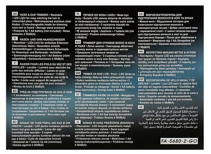 Триммер для волос FIRST FA-5680-2-Go, для носа/ушей/бороды, 1?AА (не в компл.), золотистый FIRST 340