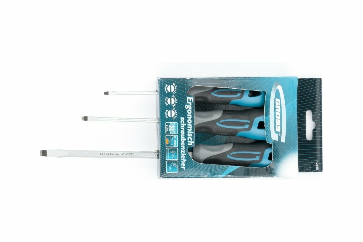Набор отверток SL, 3 шт, S2, трехкомпонентная рукоятка Gross