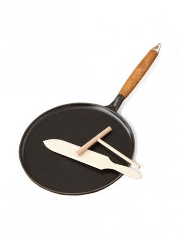 Staub Сковорода для блинов с деревянной ручкой, 28 см, с приспособлением для размазывания теста и лопаткой 1212823 Staub