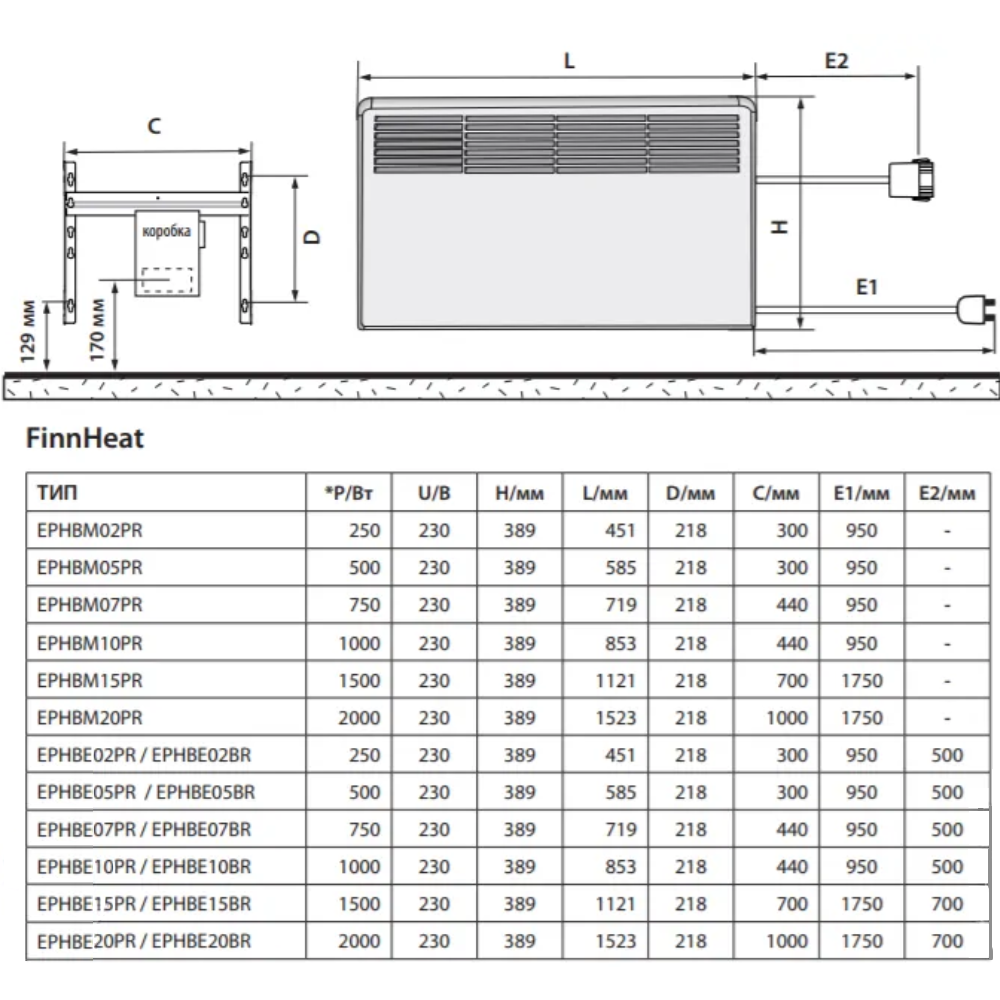 конвекторы Ensto FinnHeat Ephbm07pr .