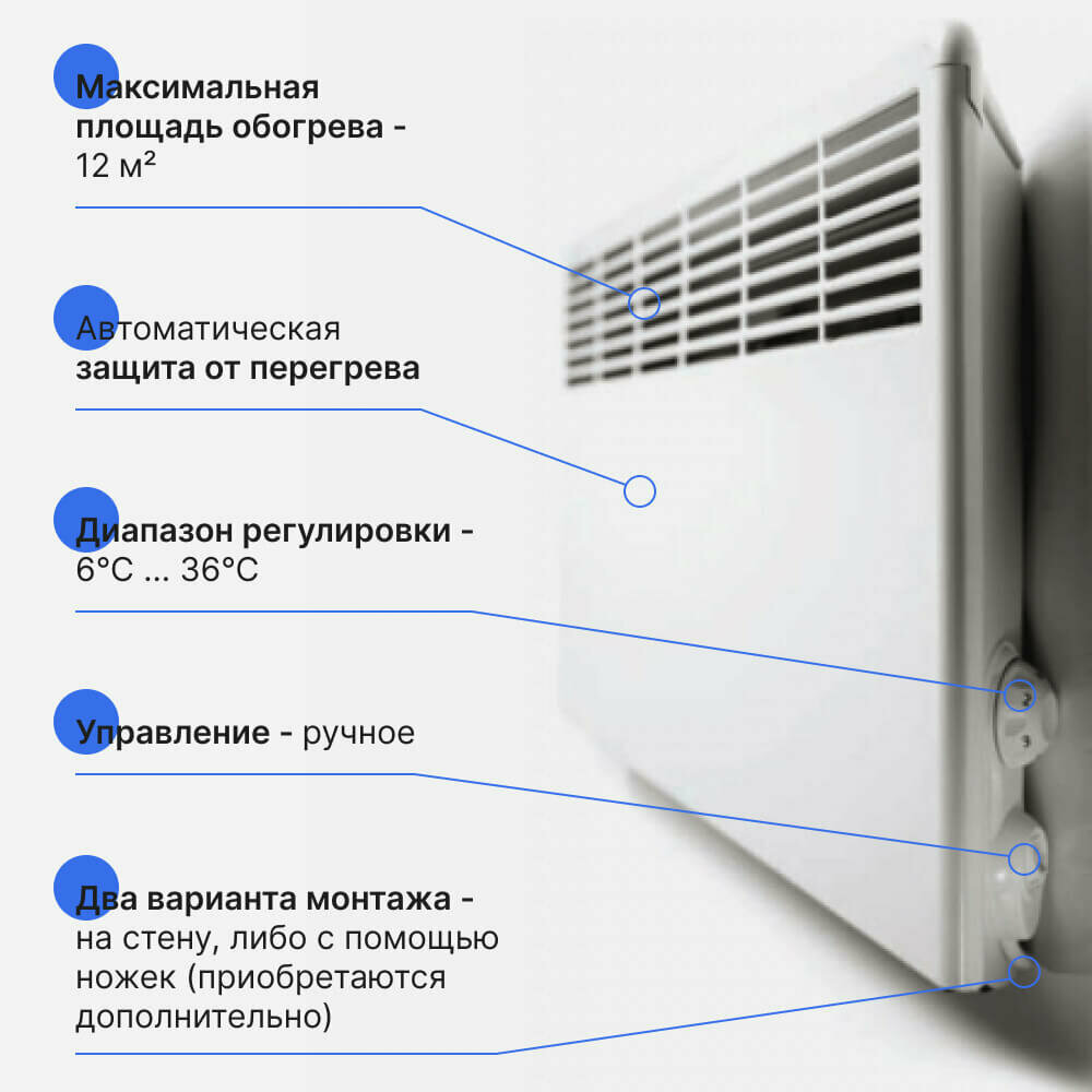 | Отзыв: | Хороший конвектор, куплено несколько штук в разный период, все работают, хорошо греют. Поверхность сильно не нагревается, работает практически без шума. |